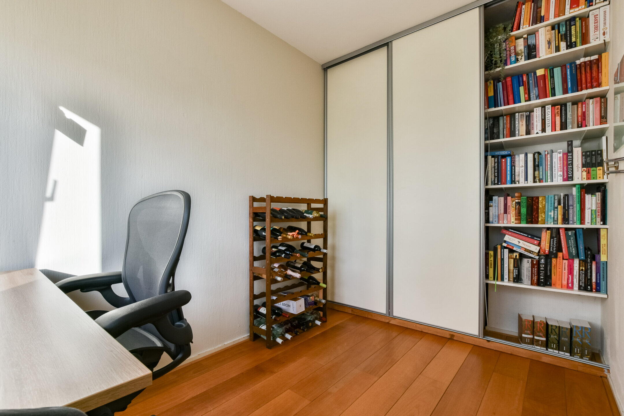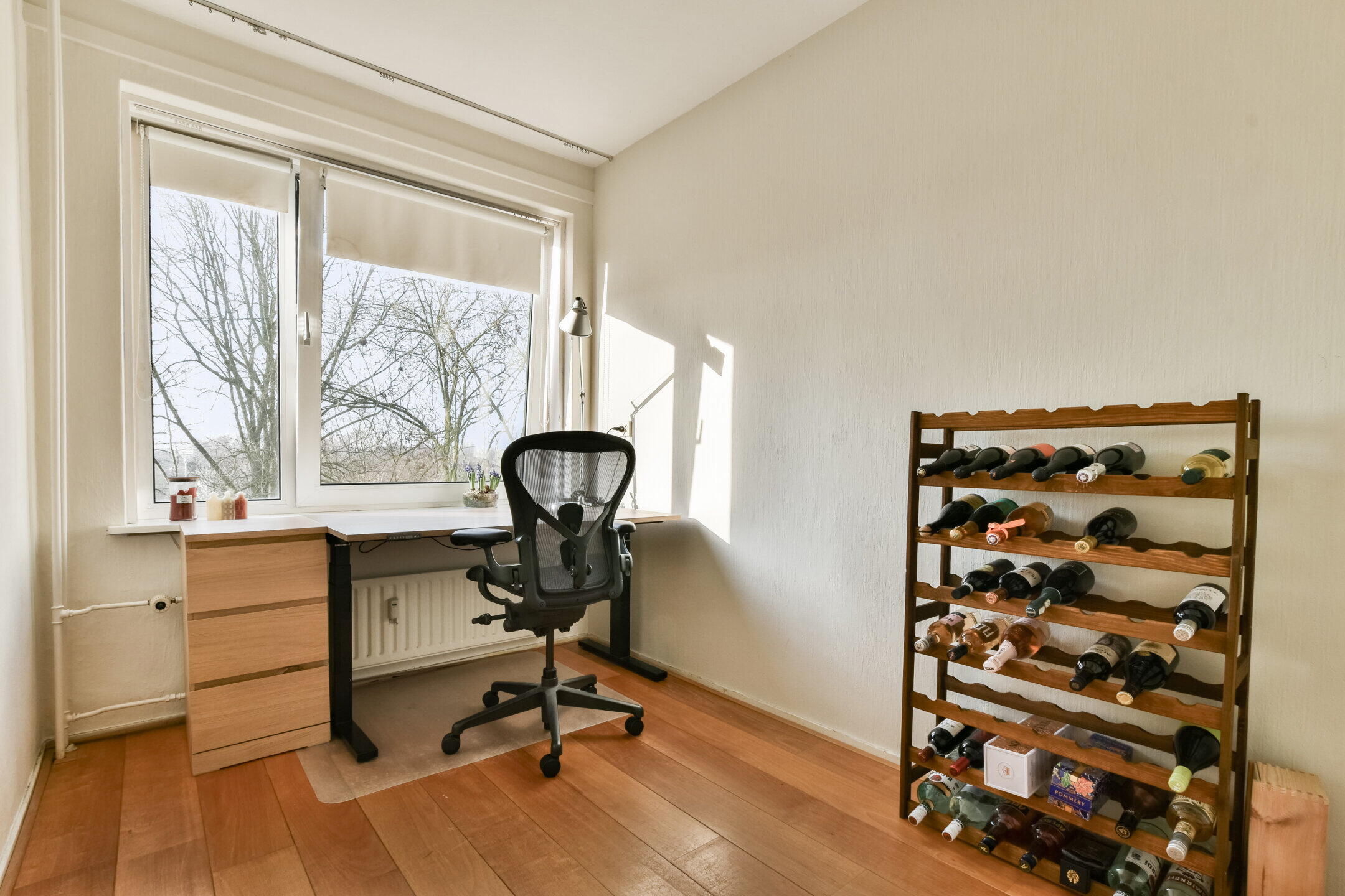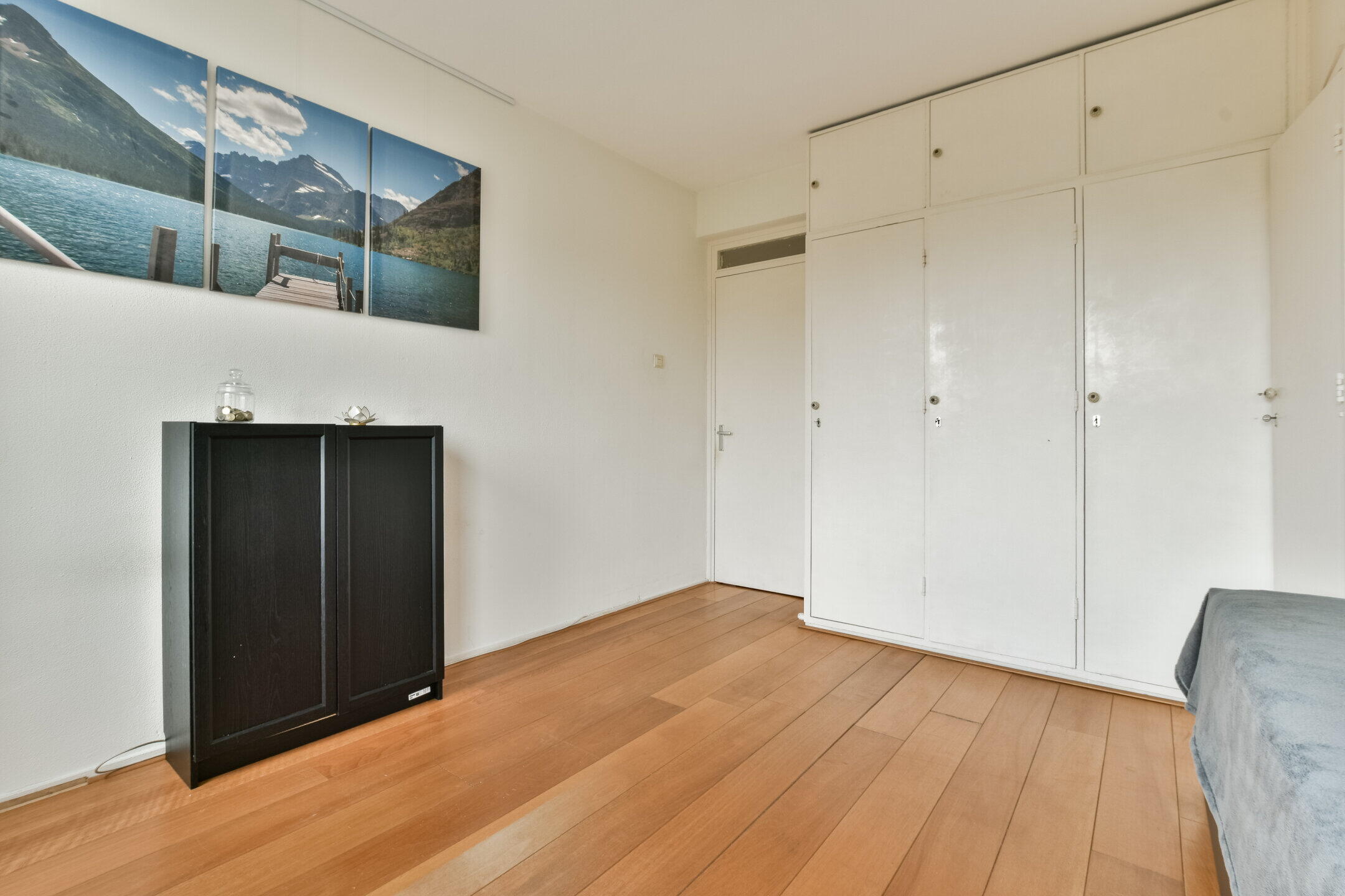 Het geheel is afgewerkt met een nette houten vloer en lichte wanden, wat zorgt voor een rustige basis die eenvoudig naar eigen smaak is aan te passen.