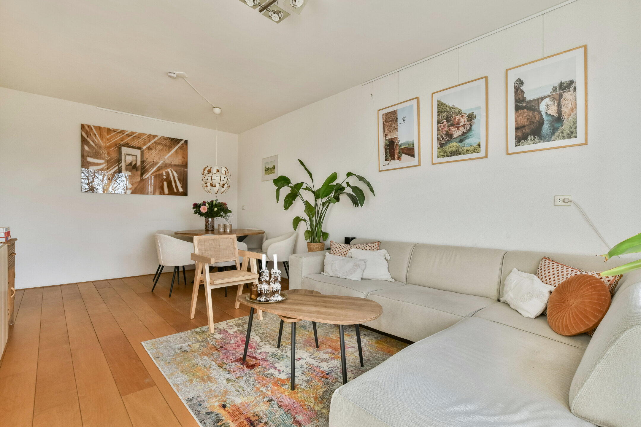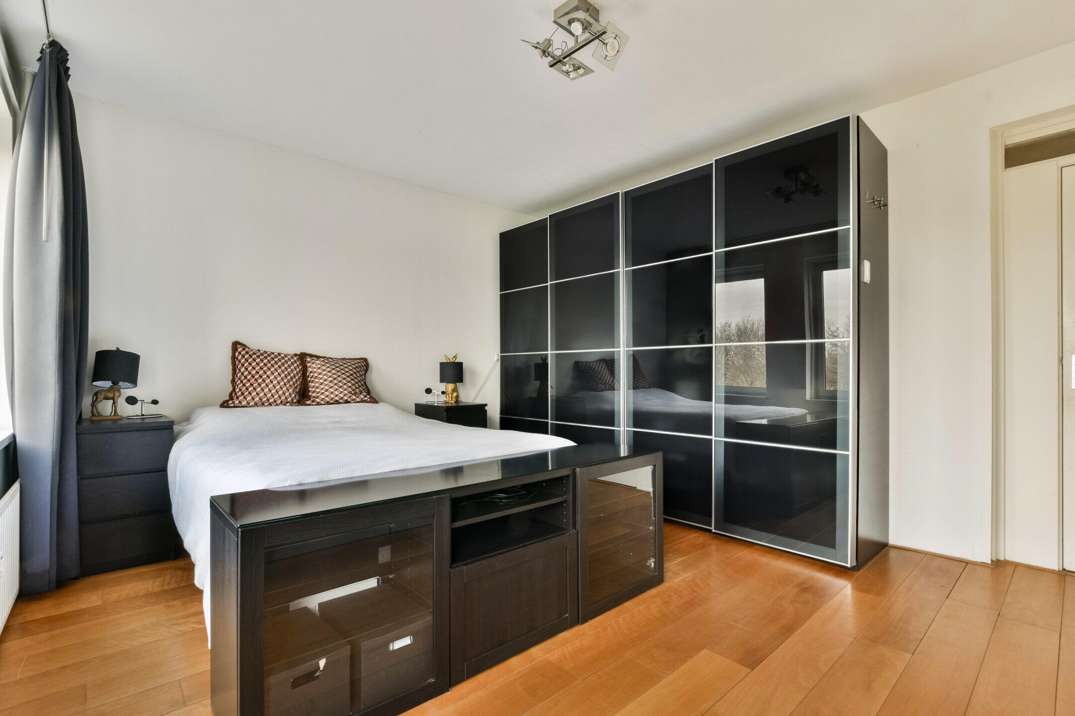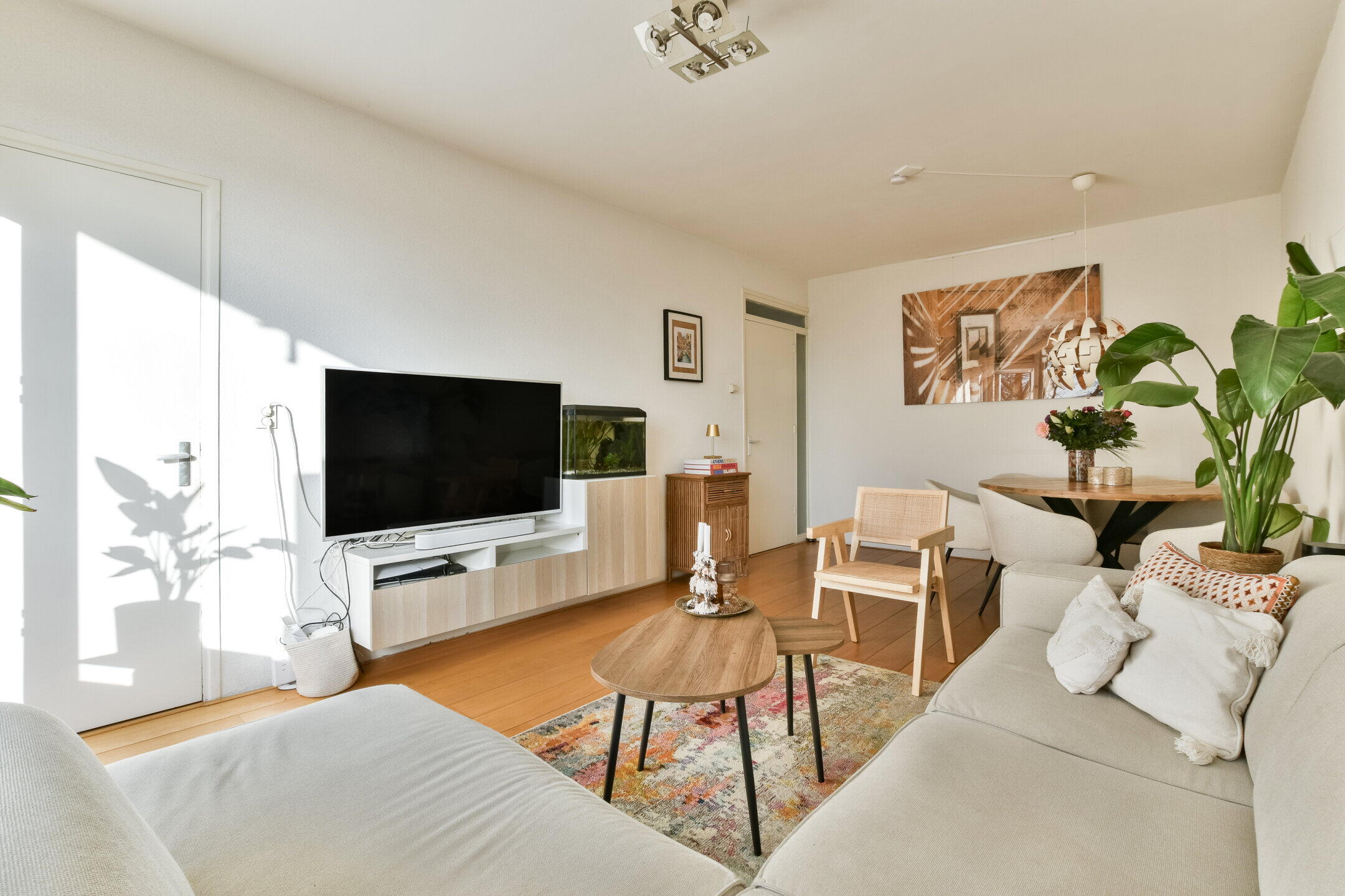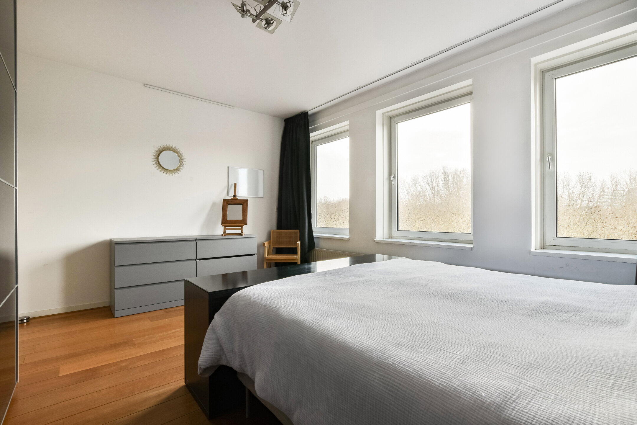 Het geheel is afgewerkt met een nette houten vloer en lichte wanden, wat zorgt voor een rustige basis die eenvoudig naar eigen smaak is aan te passen.