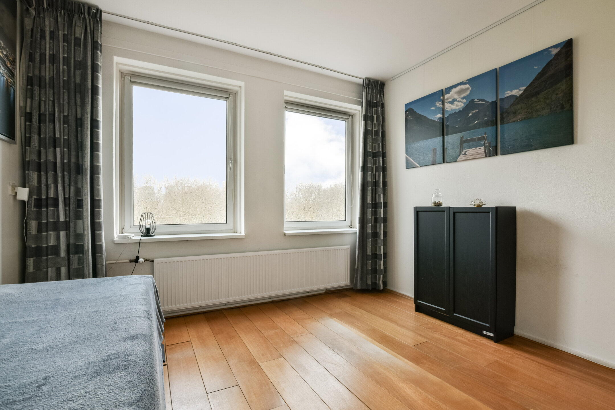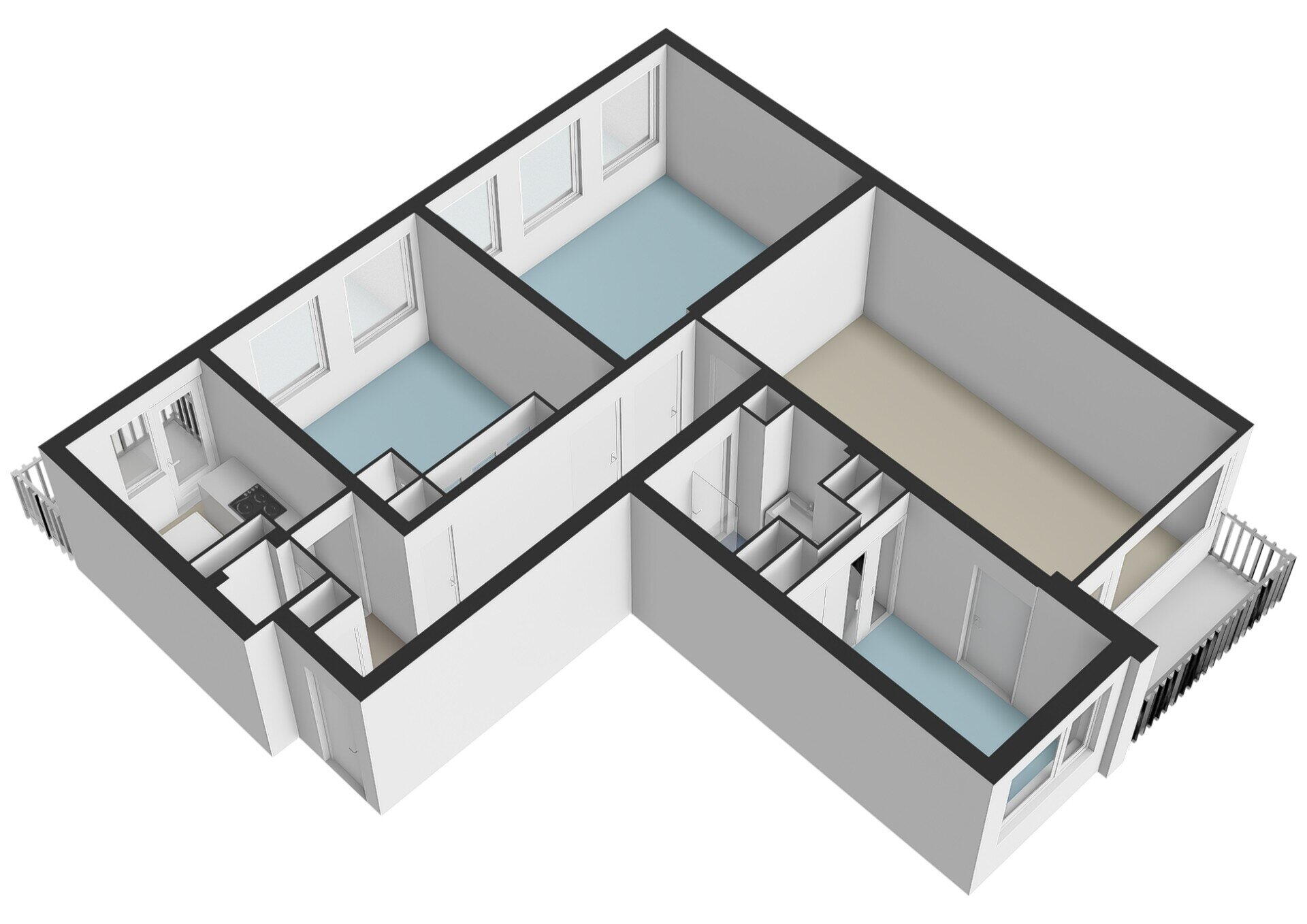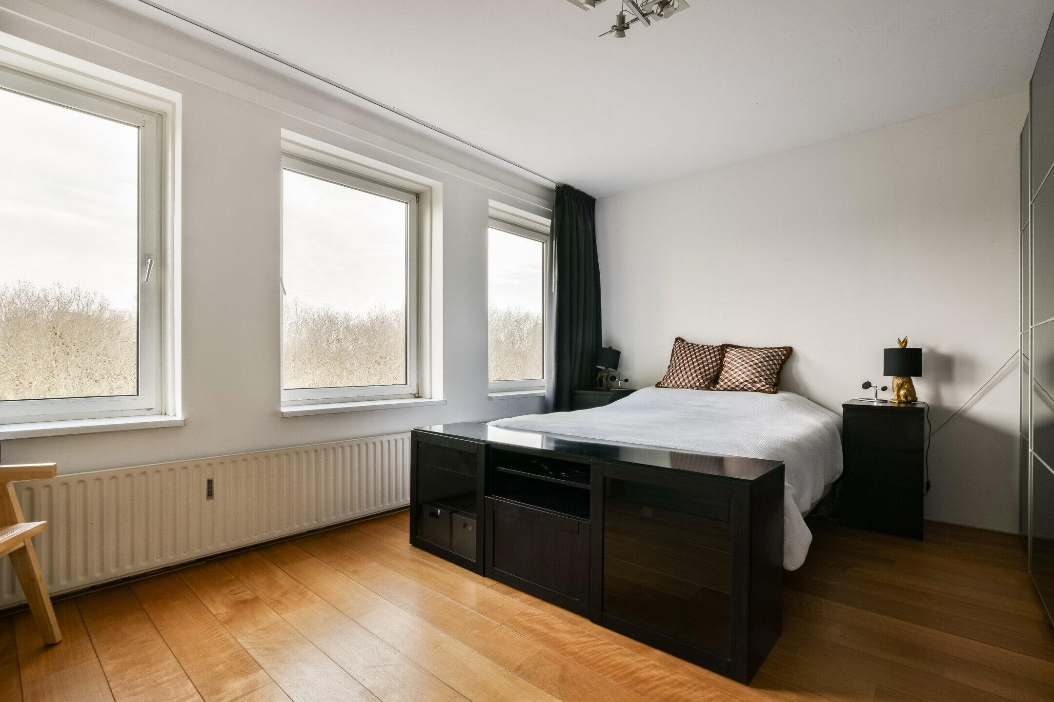 Het appartement beschikt over drie goed bemeten slaapkamers. De hoofdslaapkamer is royaal van formaat en biedt ruimte voor een groot bed en kastenwand. De tweede slaapkamer is eveneens ruim en geschikt als slaap-, werk- of logeerkamer. De derde slaapkamer is ideaal als thuiswerkplek of kinderkamer.