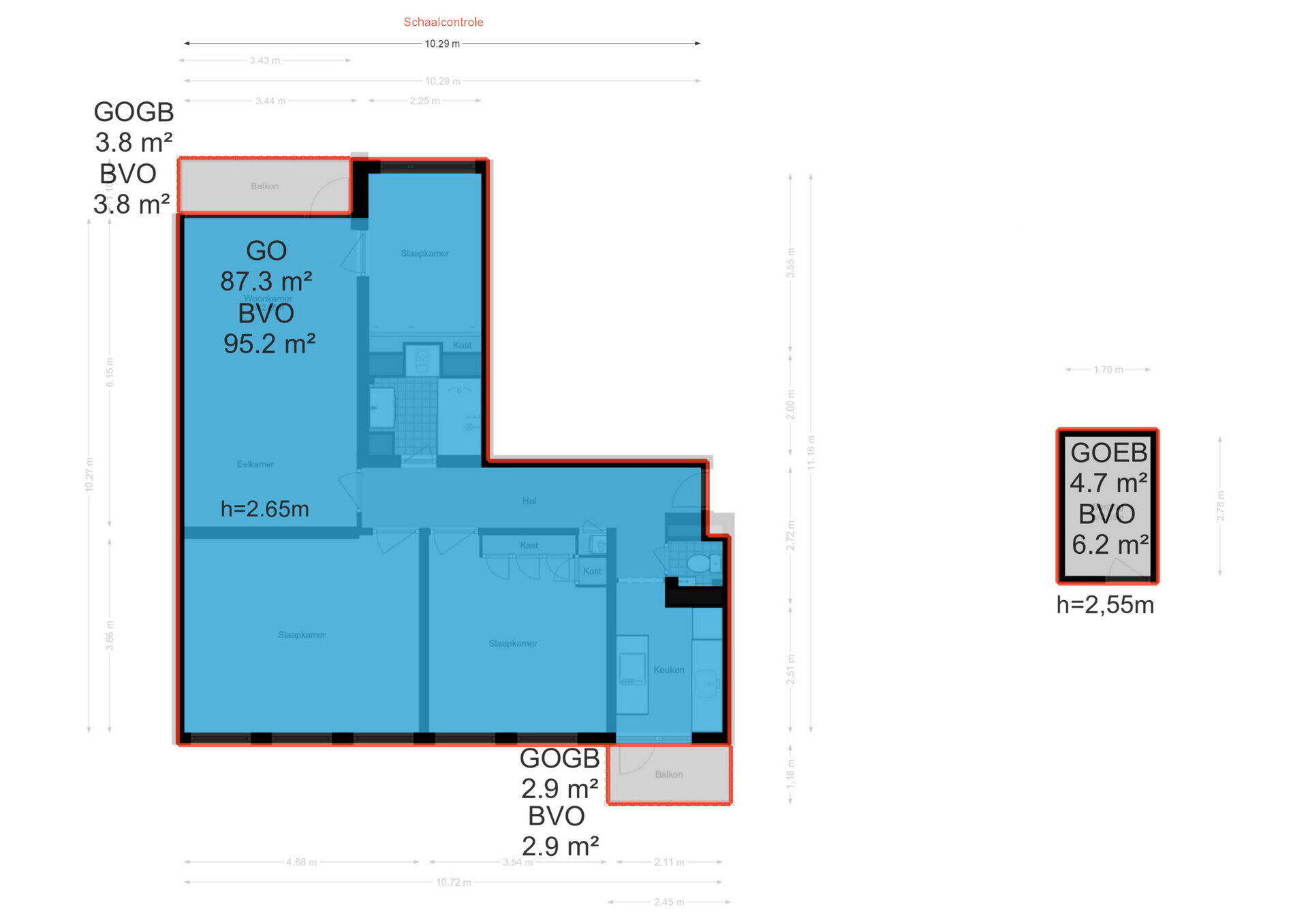 Het verkochte is gemeten met gebruikmaking van de Meetinstructie, welke is gebaseerd op de normen zoals vastgelegd in NEN 2580. De Meetinstructie is bedoeld om een meer eenduidige manier van meten toe te passen voor het geven van een indicatie van de gebruiksoppervlakte. De Meetinstructie sluit verschillen in meetuitkomsten niet volledig uit door bijvoorbeeld interpretatieverschillen, afrondingen en beperkingen bij het uitvoeren van een meting. De woning is gemeten door een betrouwbaar professioneel bedrijf en koper vrijwaart de medewerkers van Voorma & Millenaar makelaars o.g. en de verkoper voor eventuele afwijkingen in de opgegeven maten. Koper verklaart in de gelegenheid te zijn gesteld om de het verkochte zelf te (laten) meten conform NEN 2580.