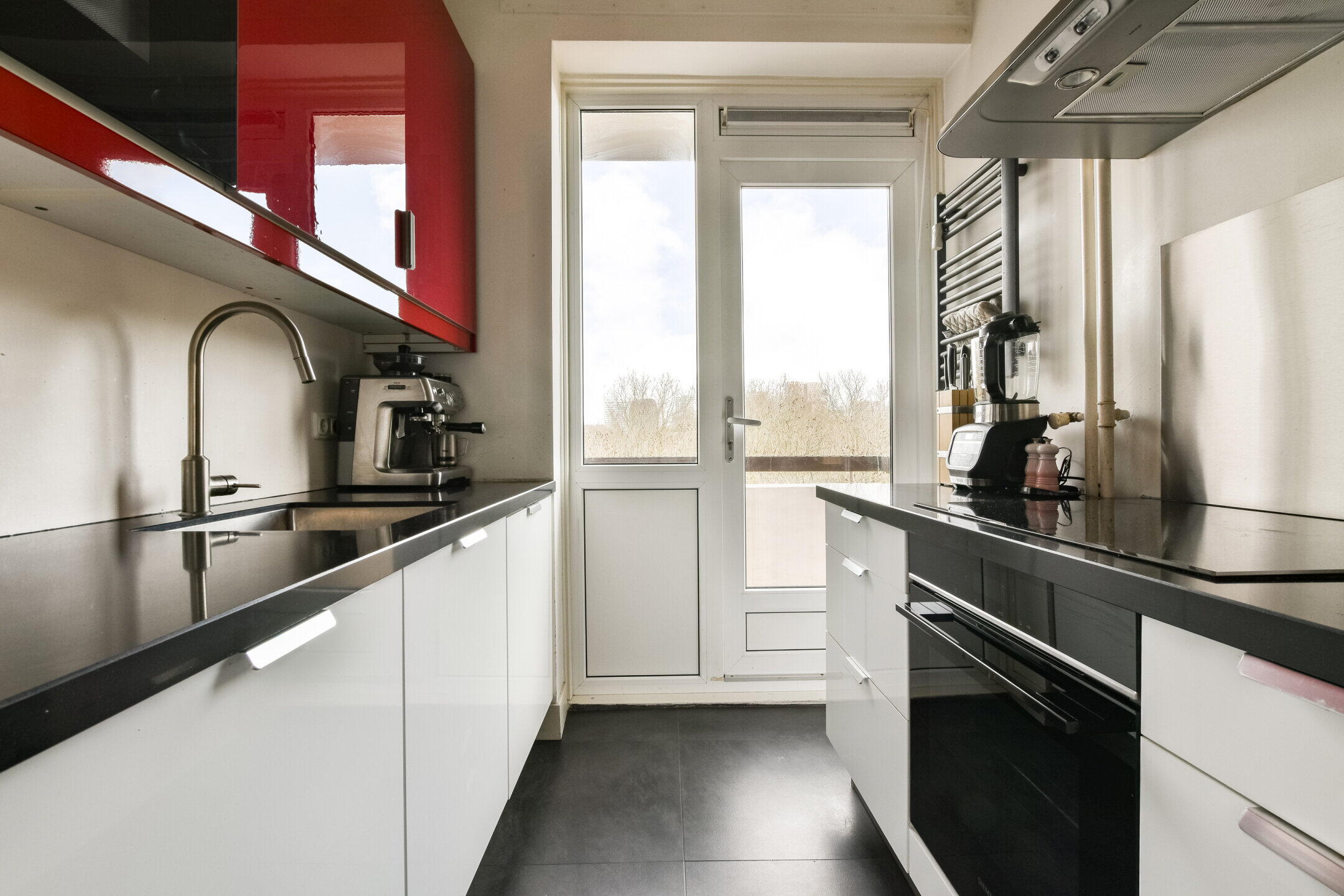 De separate keuken is modern uitgevoerd en voorzien van diverse inbouwapparatuur. Ook vanuit de keuken is er toegang tot een tweede balkon, wat zorgt voor extra lichtinval en ventilatiemogelijkheden.